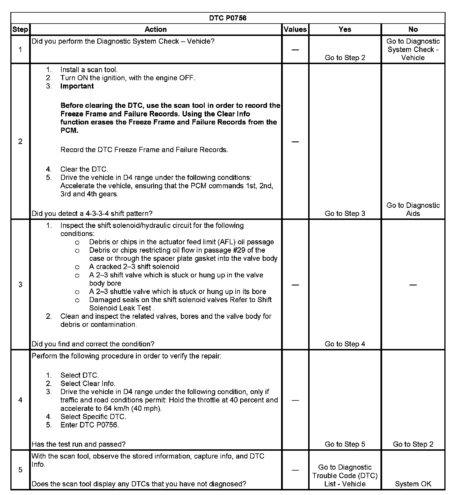 ^ The PCM stores DTC P0756 in PCM history.