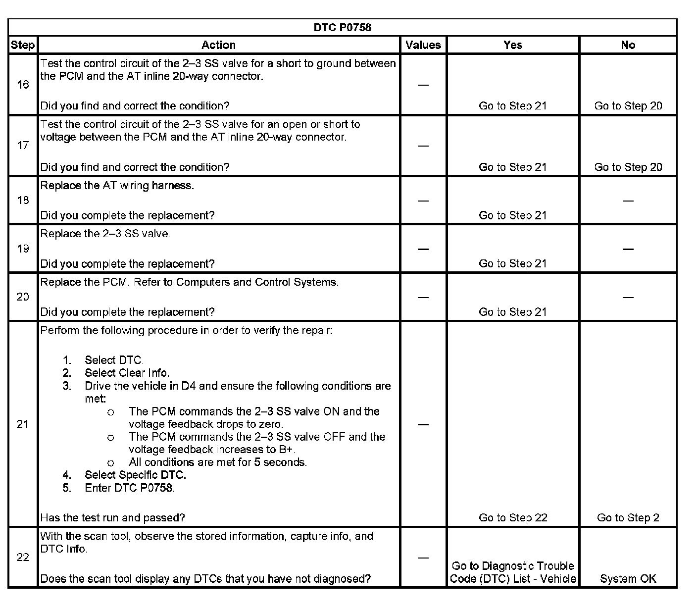 DTC P0758 2-3 Shift Solenoid (SS) Control Circuit
