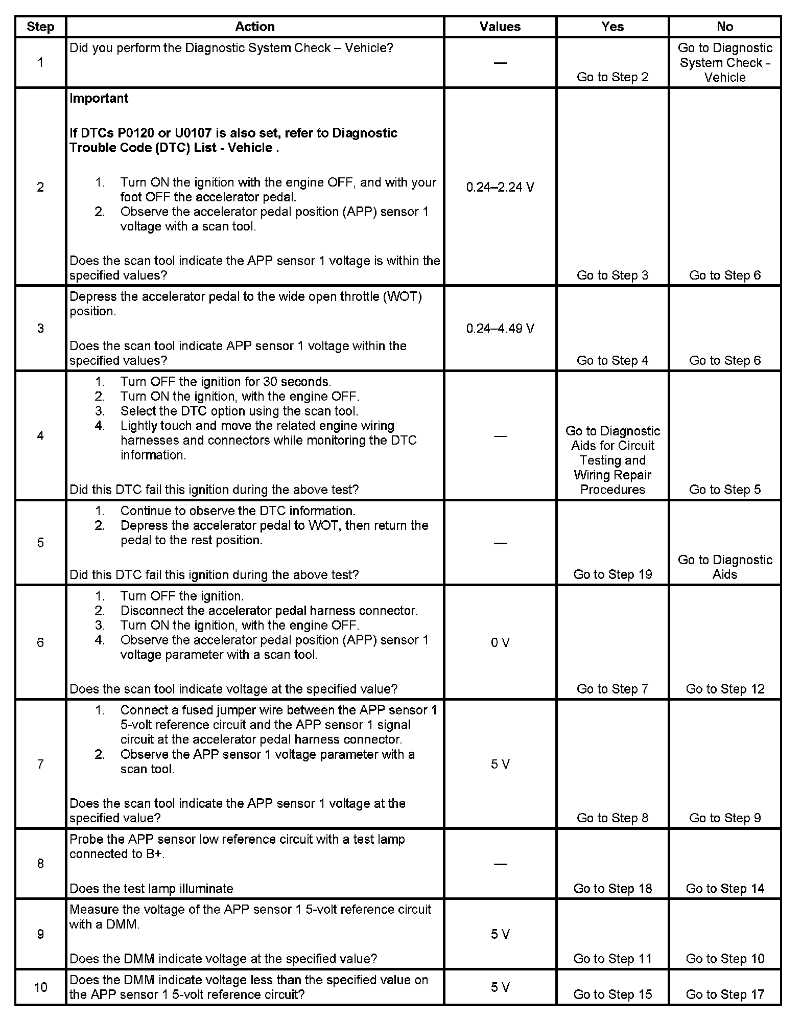 DTC P2120 Accelerator Pedal Position (APP) Sensor 1 Circuit