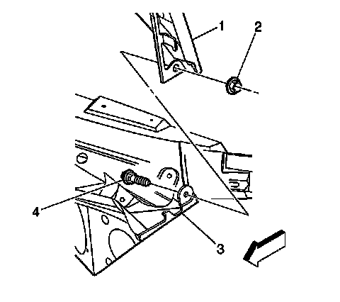 6. Remove the pivot bolts (4) and the nuts (2) from the hinge (1).