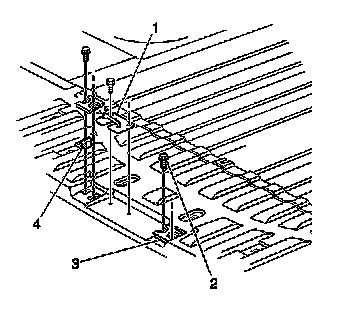 1. Remove the bolts (2) that retain the rear door lower striker (1) to the floor panel.