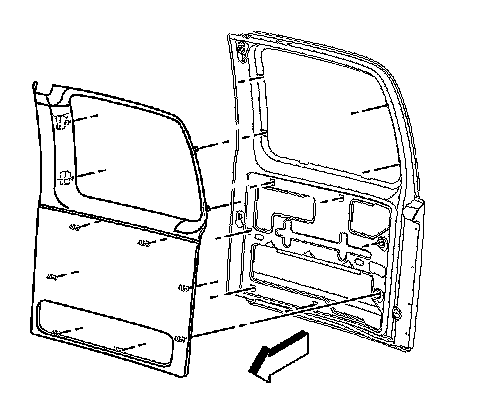 1. Align the tabs on the left side rear door trim panel with the slots in the door.