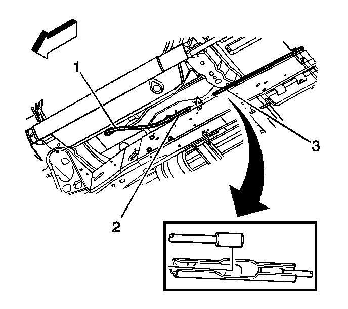 4. Route the cable in through the floor pan and engage the grommet (1).