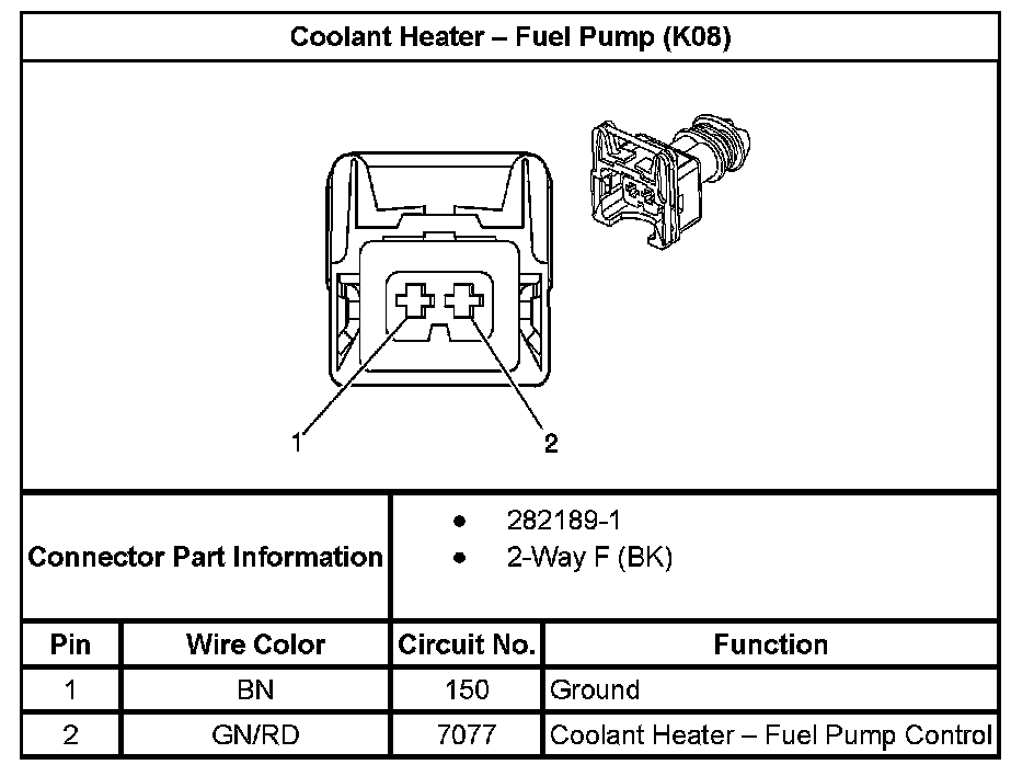 Coolant Heater - Fuel Pump (With RPO Code K08):