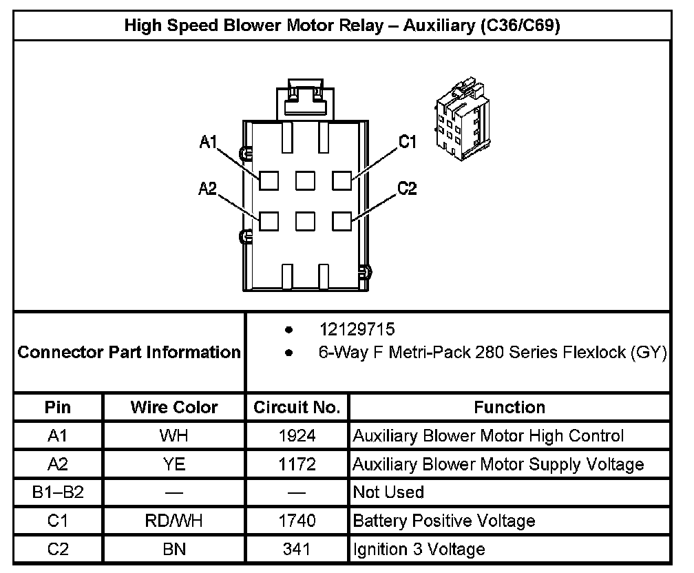 High Speed Blower Motor Relay - Auxiliary (With RPO Code C36/C69):