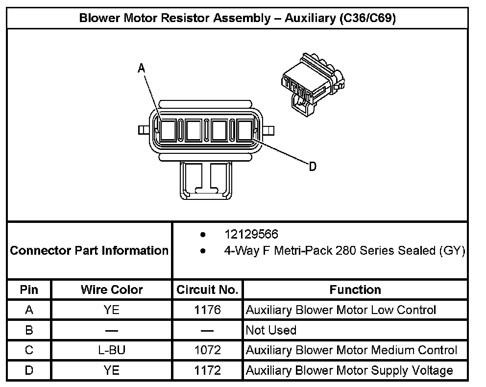 Blower Motor Resistor Assembly - Auxiliary (With RPO Code C36/C69):