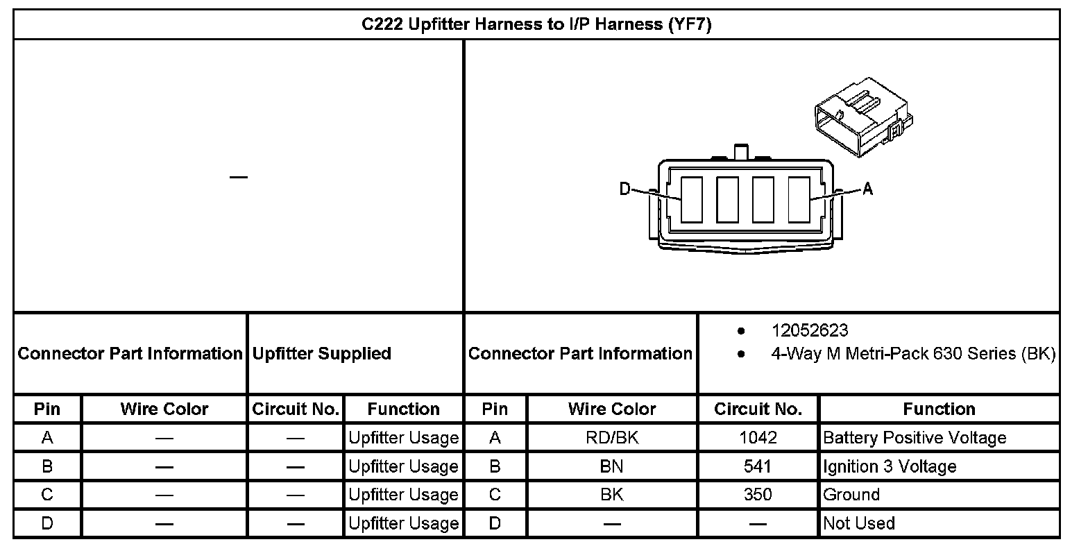 C222 Upfitter Harness to I/P Harness (With RPO Code YF7):