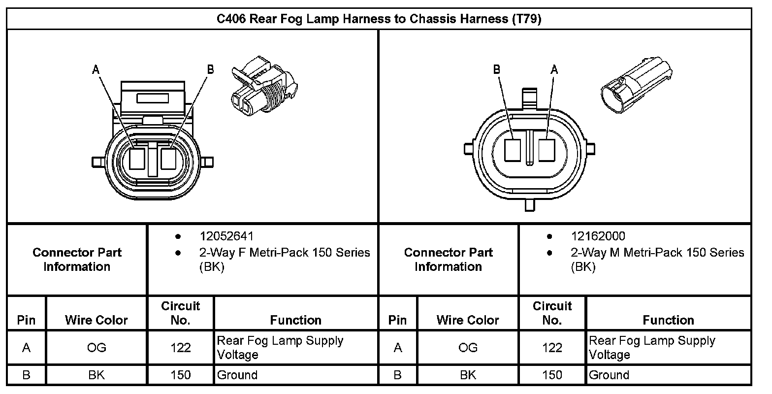 C406 Rear Fog Lamp Harness to Chassis Harness (With RPO Code T79):