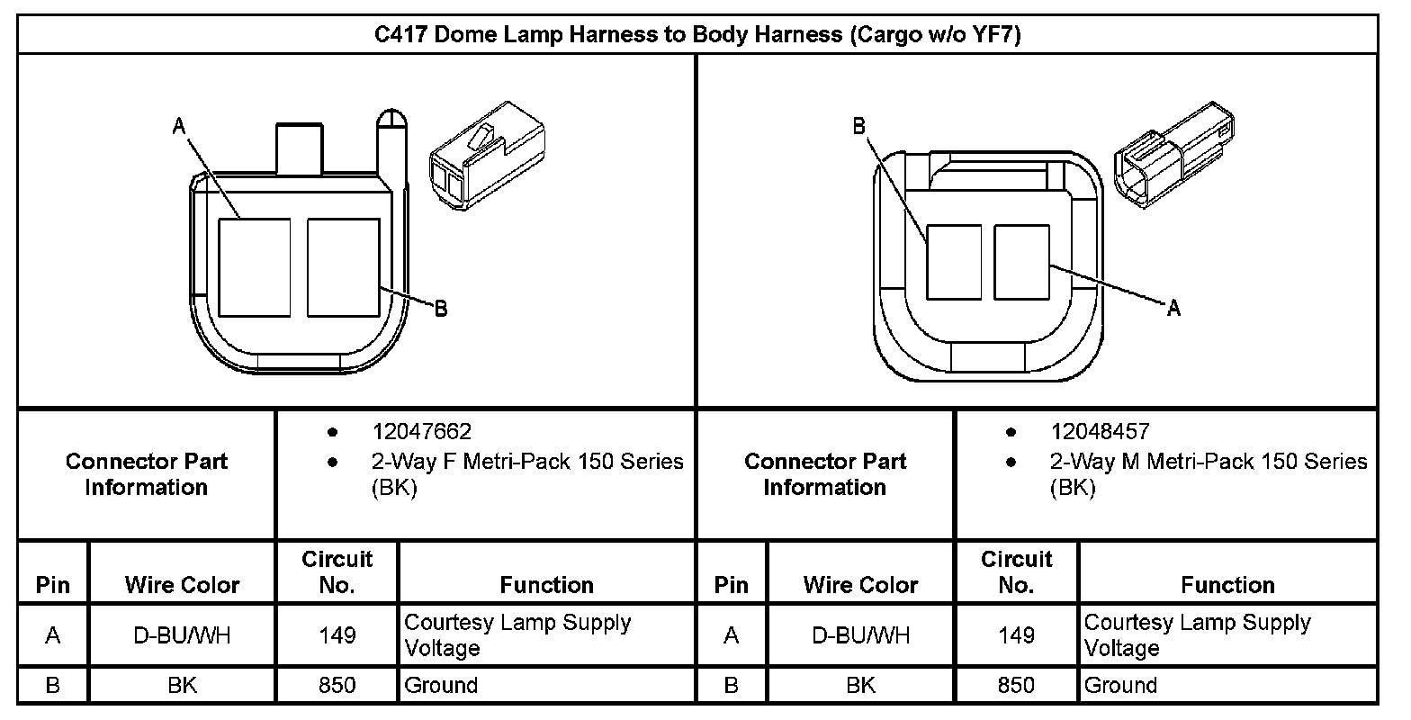 C417 Dome Lamp Haness to Body Harness (Cargo Without RPO Code YF7):