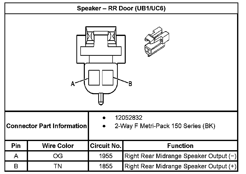 Speaker - RR Door (With RPO Code UB1/UC6):