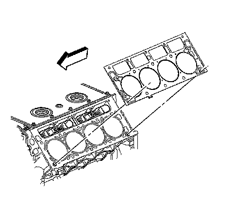6. Install the NEW left cylinder head gasket onto the locating pins.