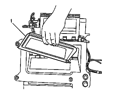 5. Remove the air temperature door (1) from the heater assembly.
