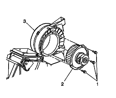 4. Install the screws (1) to the auxiliary blower motor (2).