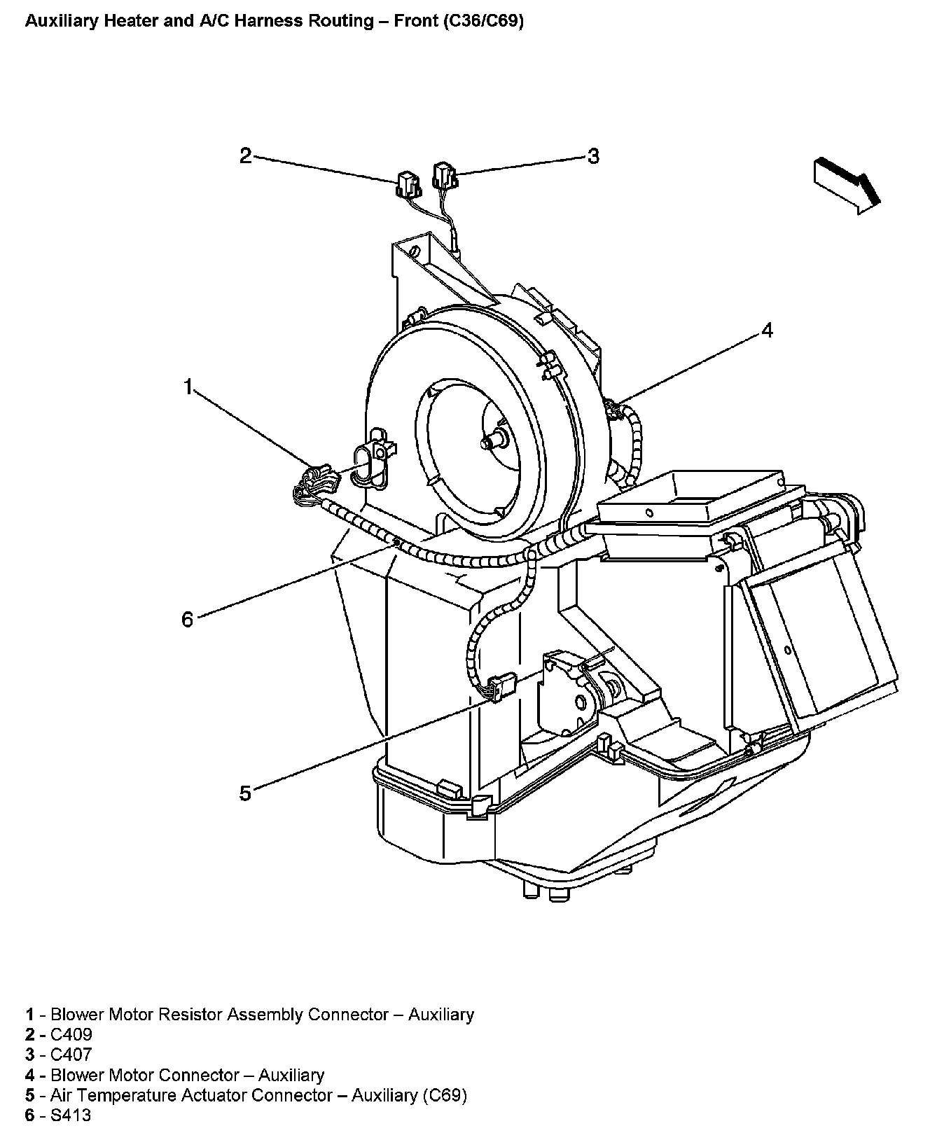 Auxiliary Heater and A/C Harness Routing - Front