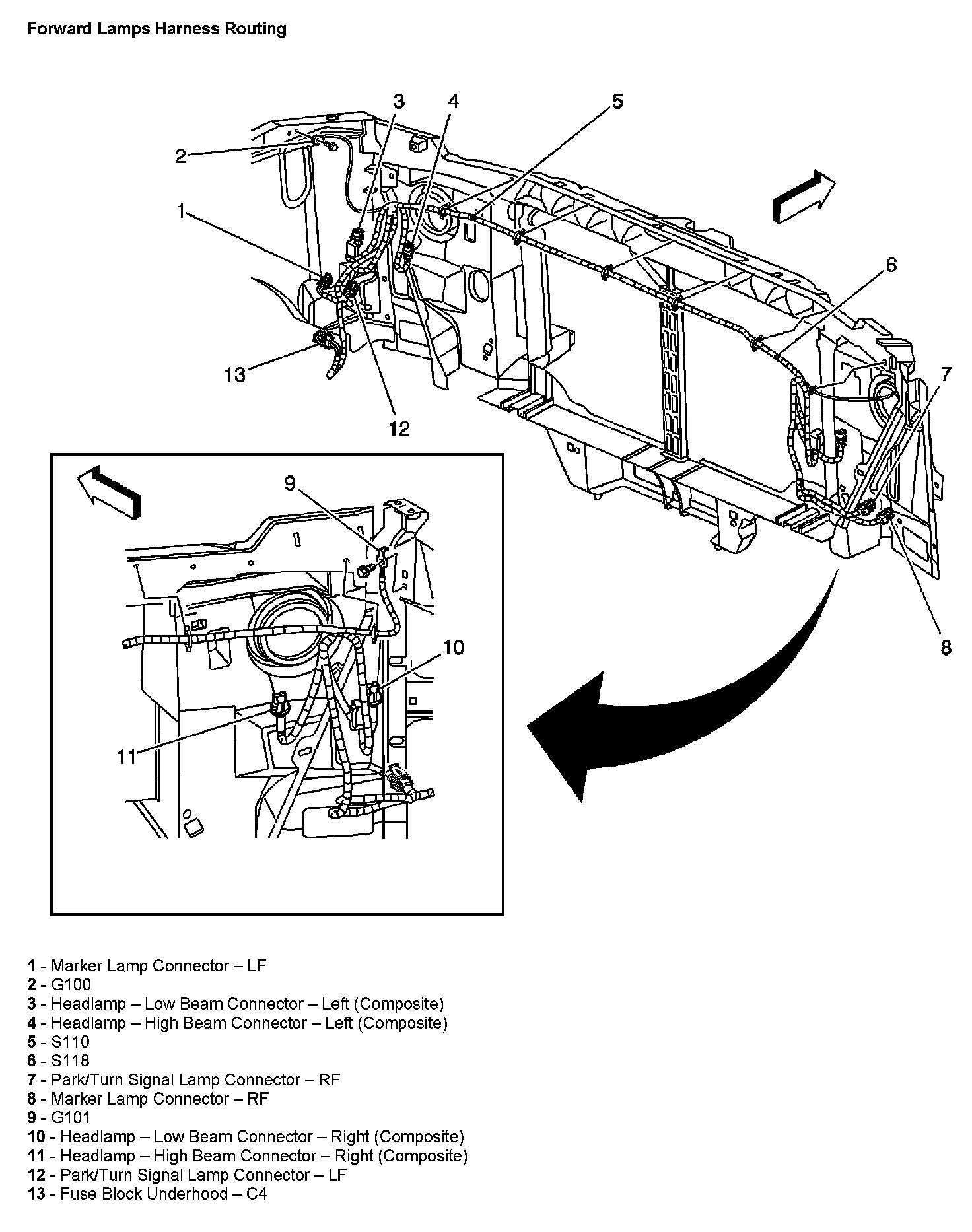 Forward Lamps Harness Routing:
