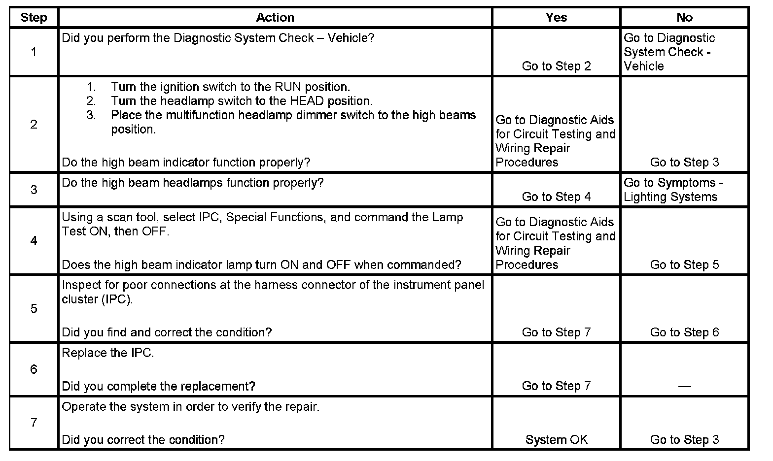High Beam Indicator Inoperative