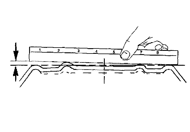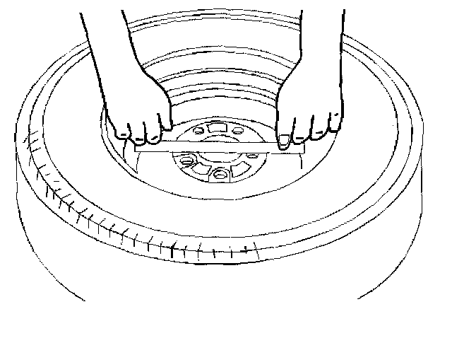 1. Use a straight edge 203-229 mm (8-9 inch) long. Place the straight edge on the wheel inboard mounting surface. Try to rock the straightedge up and down within the mounting surface.