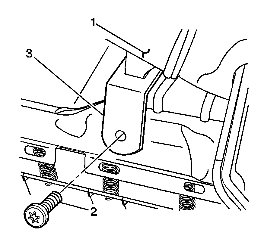 1. Install the center seat belt lower belt (3) to the seat cushion frame.