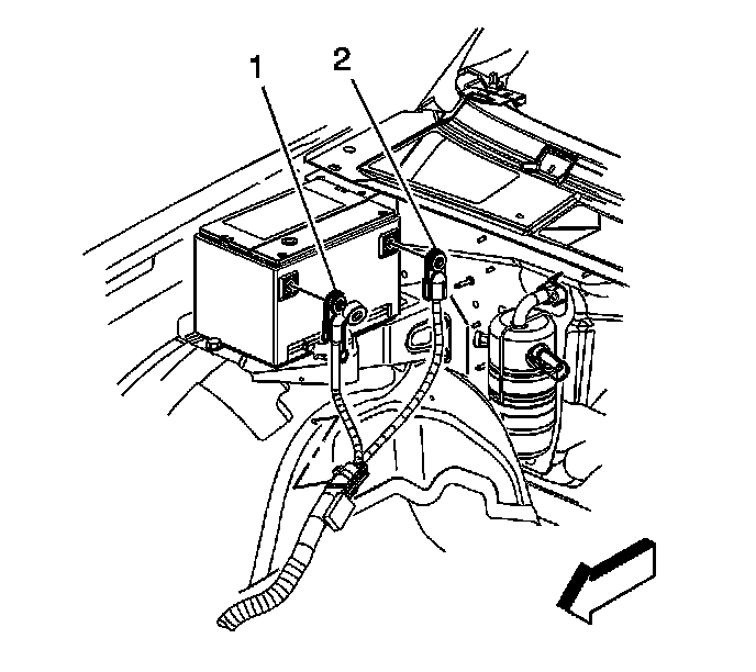 2. Disconnect the auxiliary battery negative cable (2).