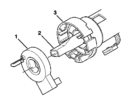 Important: When reusing the sensor (1) you must install a pin into the sensor before it is removed from the steering shaft. By not installing a pin into the sensor it will cause the sensor to lose its centering position and must be discarded.