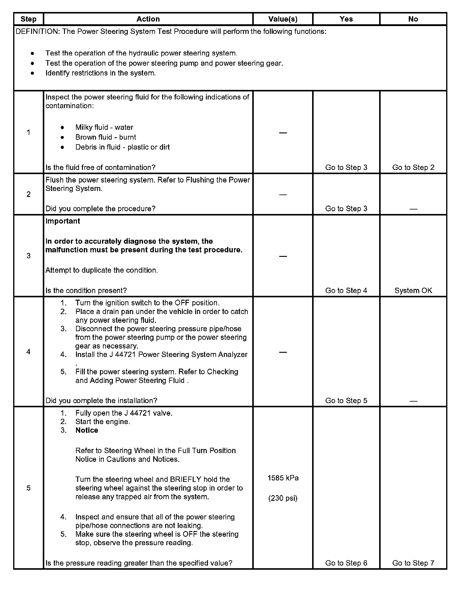 Power Steering System Test Procedure