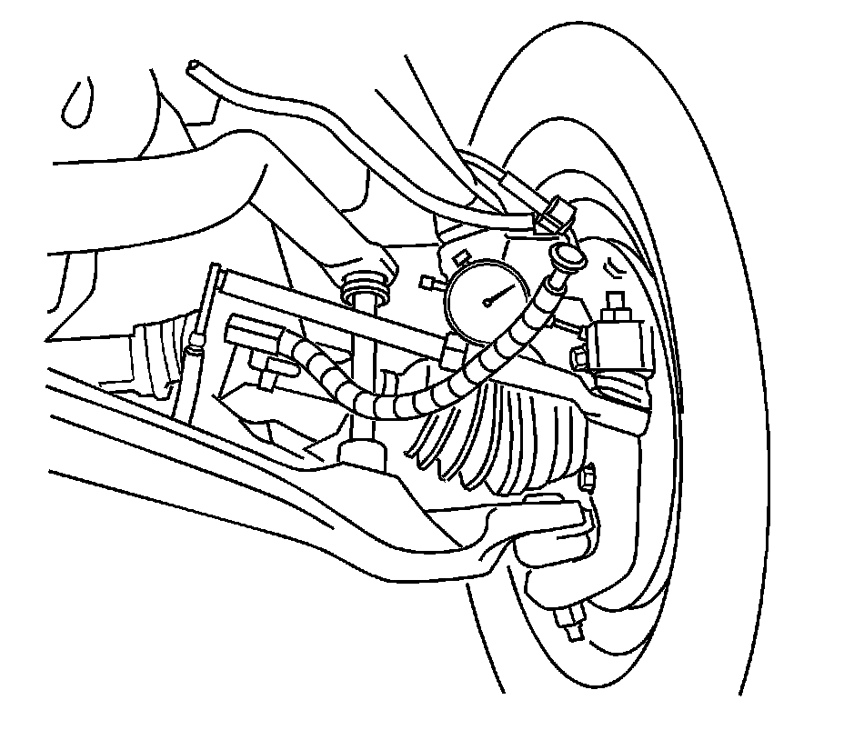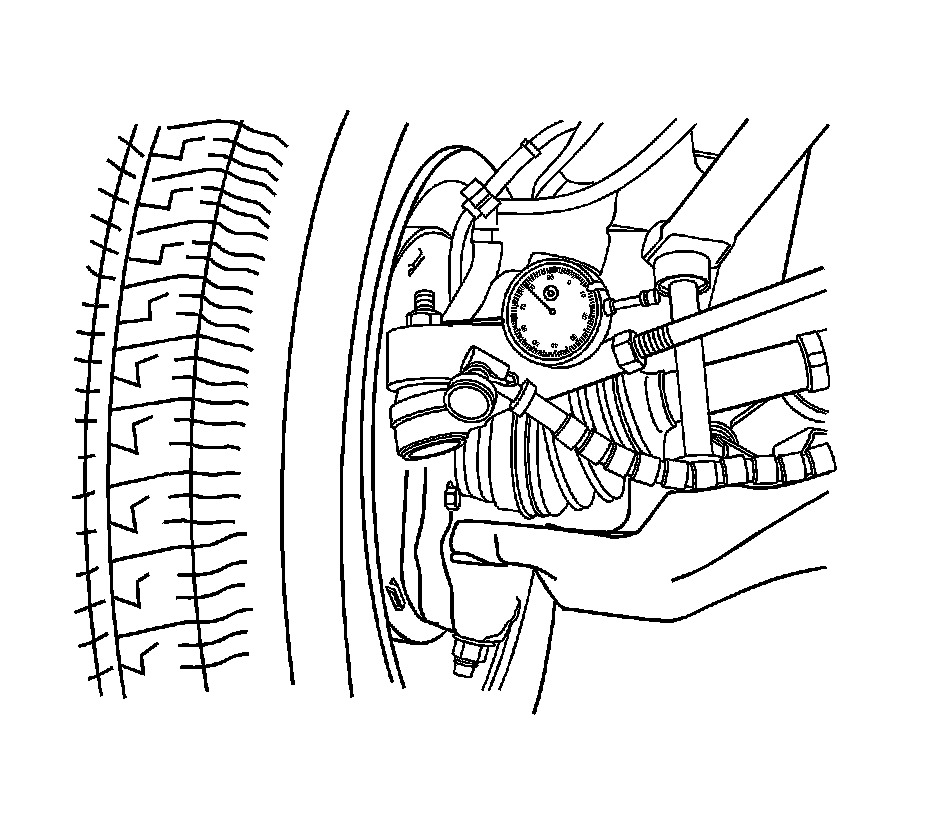4. Place the dial indicator at zero, pull outward on the tire and note amount of movement in joint. Movement should not exceed 1.0 mm.