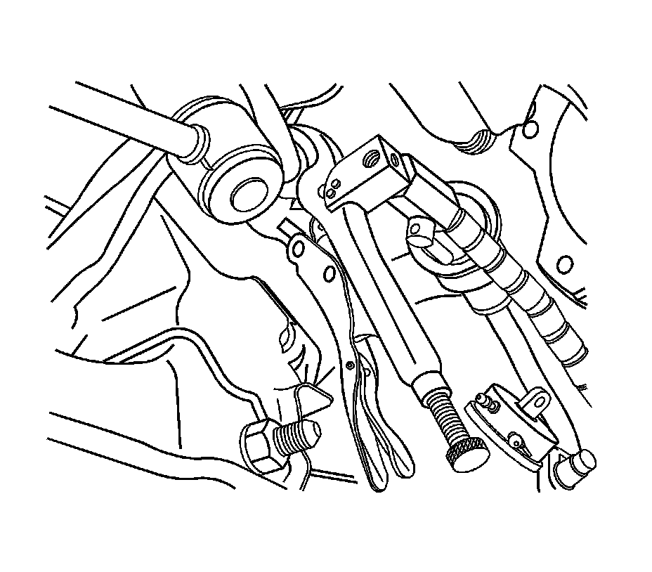 2. Position the wheels in a straight-ahead position and install the J 42640.