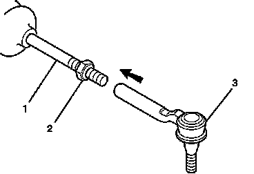 1. Connect the outer tie rod (3) to the inner tie rod (1). Do not tighten the jam nut (2).