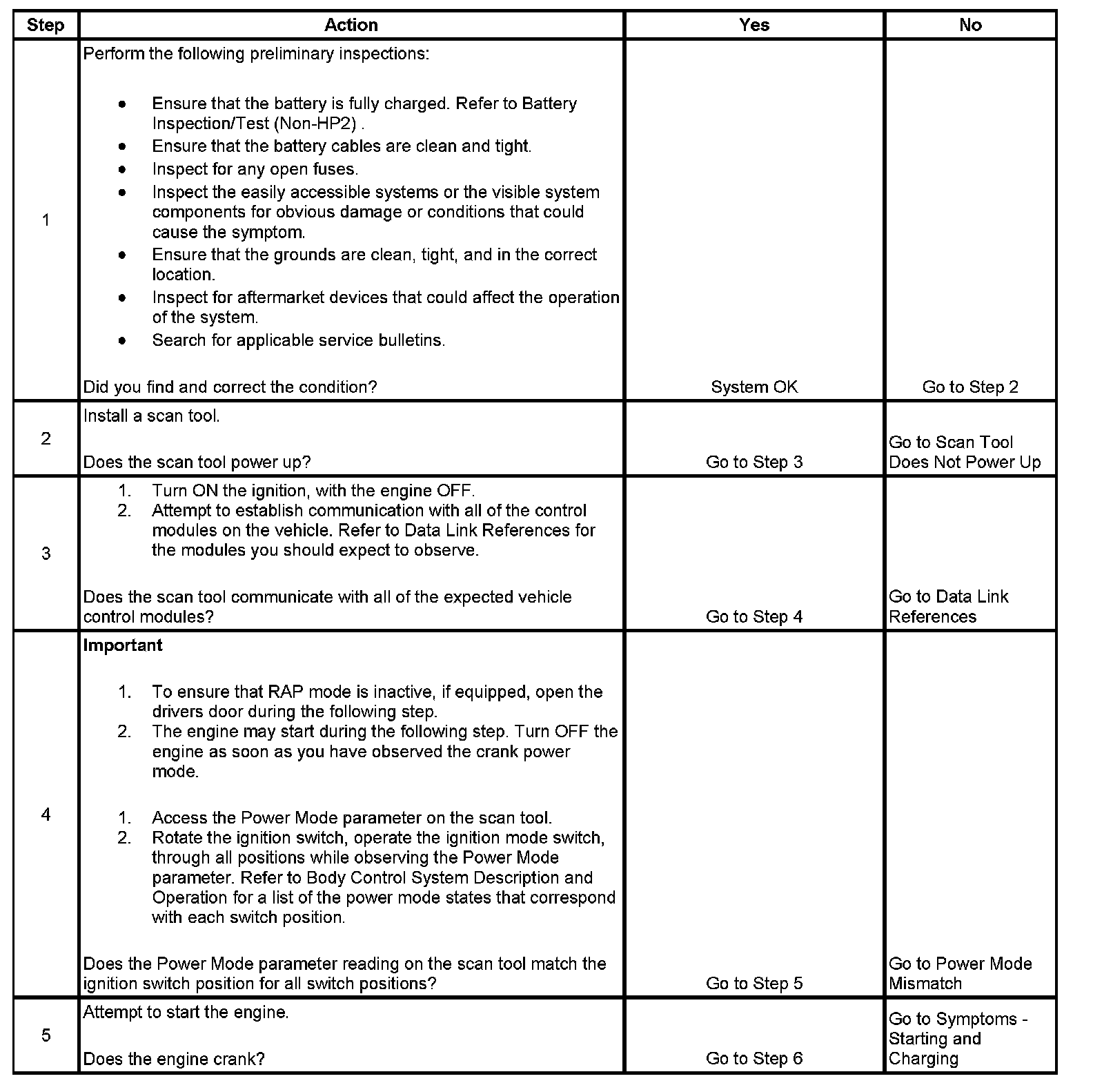 1. This step ensures that the battery, and the vehicle primary power and ground systems are functioning correctly.