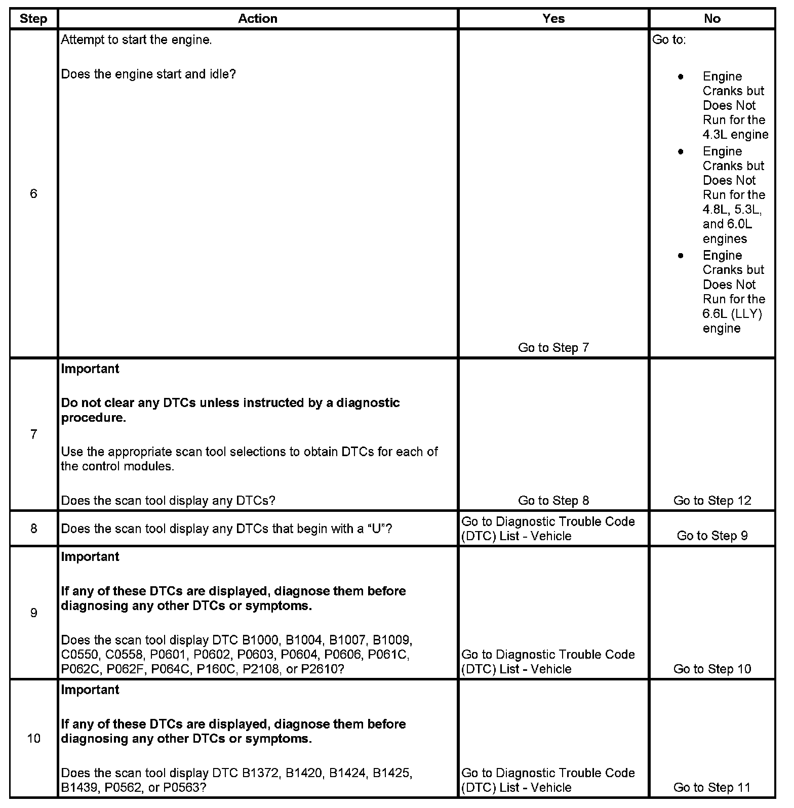 10. This step ensures that all device voltage DTCs are diagnosed before other system level DTCs.