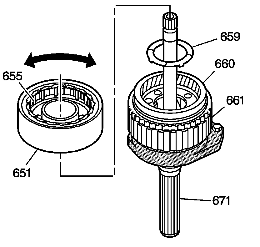 18. Lubricate the reaction carrier pinion gears (655) with DEXRON VI transmission fluid.