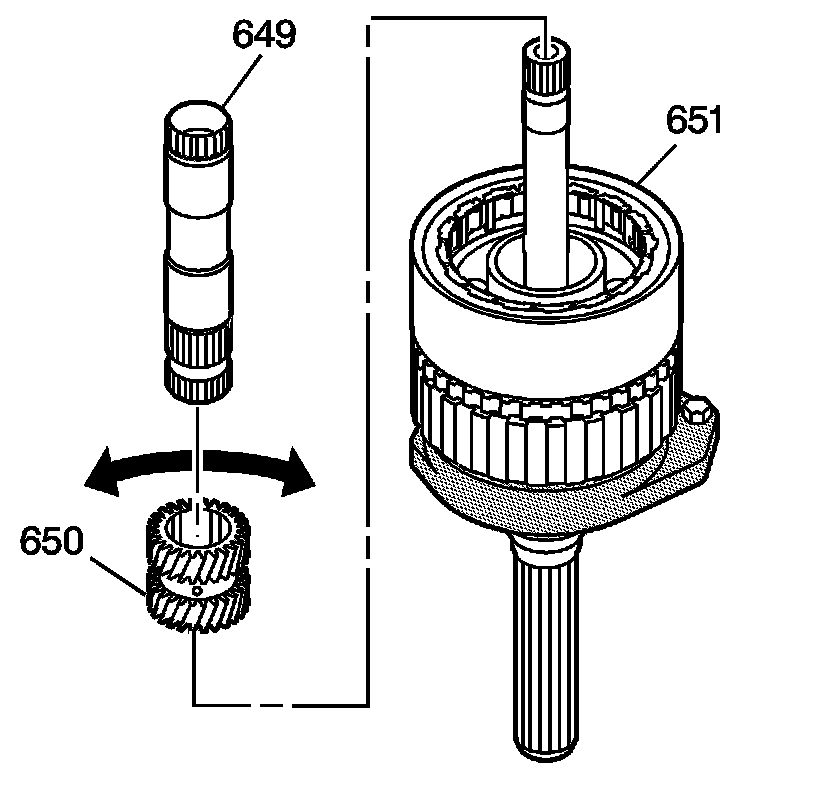 22. Insert the sun gear shaft assembly (649) with the long splined end into the sun gear (650).