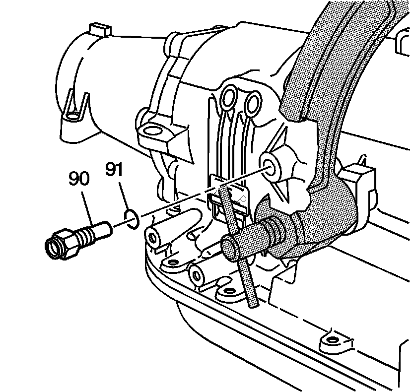 6. Install the rear oil cooler pipe fitting (90) into the transmission case.