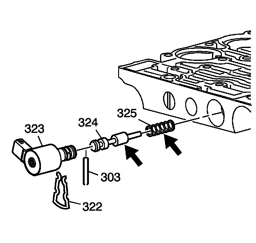 5. Remove the TCC PWM solenoid valve assembly (323).