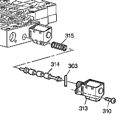 38. Install the pressure control solenoid clamp bolt (310).