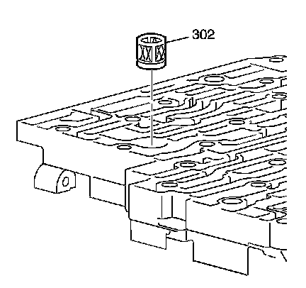 33. Install the TCC regulator apply valve pin (303).