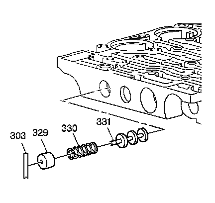 19. Install the shift valve fluid filter bore plug pin (303).
