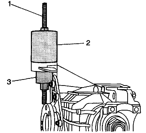 3.1. Install the J45850-2 (2), the J45850-3 (1), the forcing screw, the thrust bearing, and the nuts (3) over the differential carrier assembly bushing as shown.