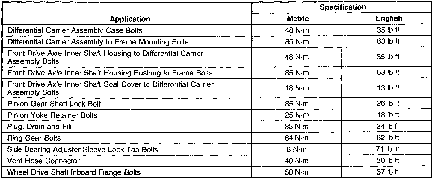 Fastener Tightening Specifications: