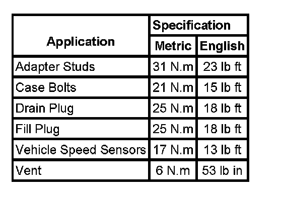 Fastener Tightening Specifications: