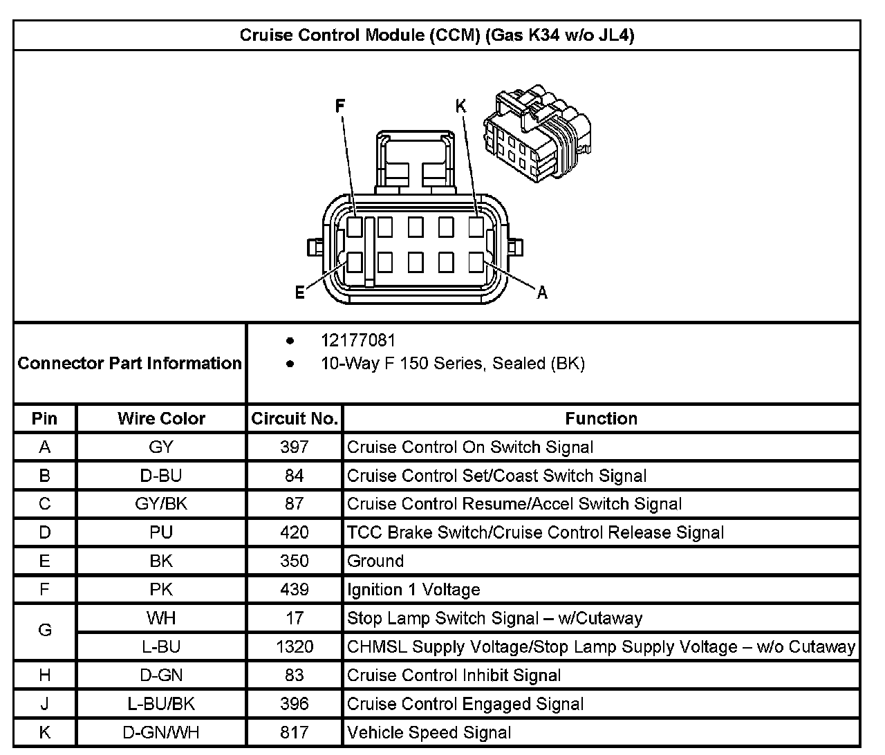Cruise Control Module (CCM) (With RPO Code Gas K34 Without JL4):