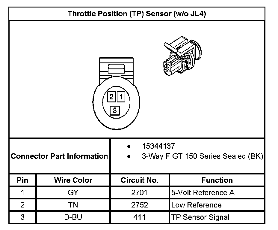 Throttle Position (TP) Sensor (Without RPO Code JL4):
