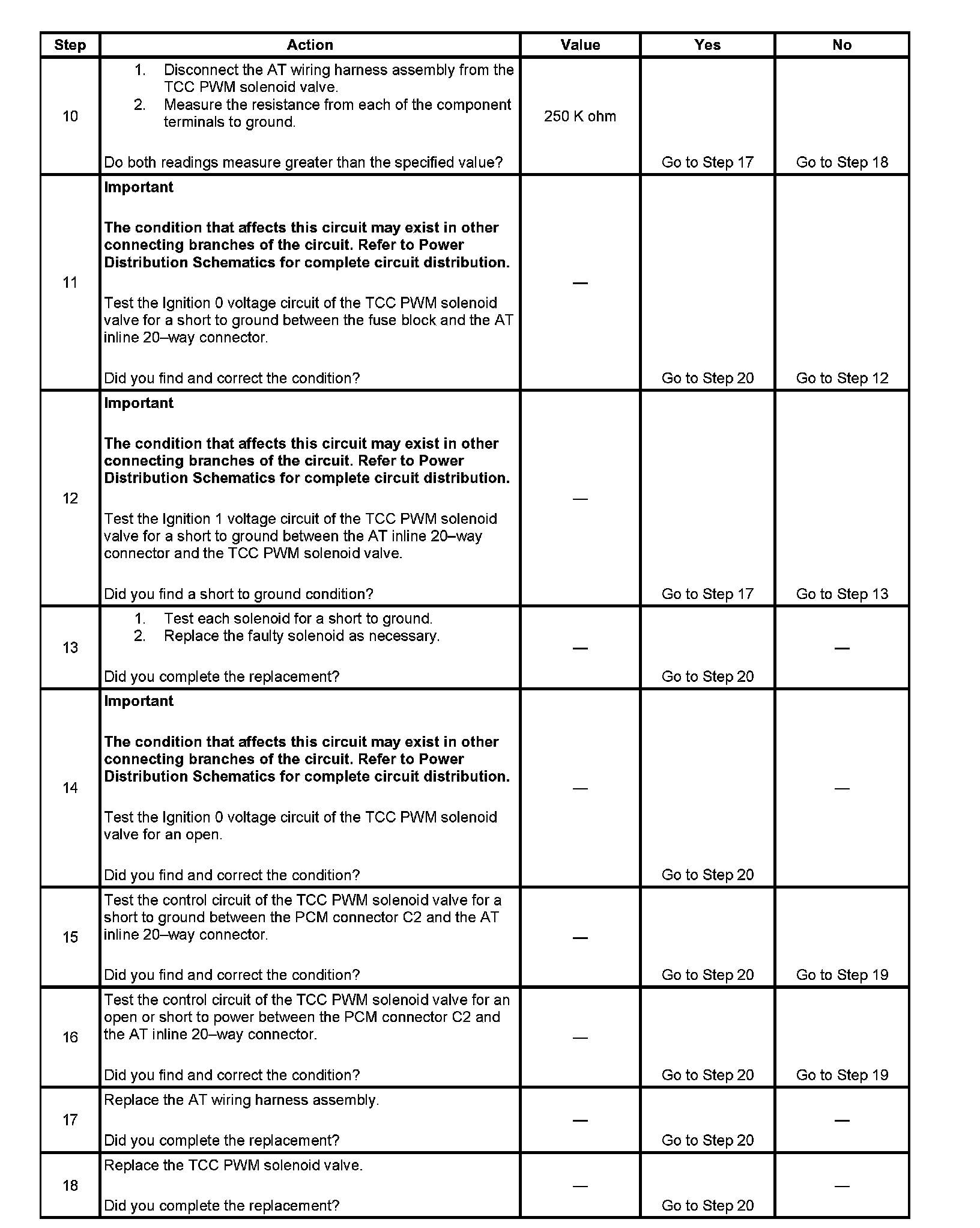 7. This step tests the resistance of the TCC PWM solenoid valve and the automatic transmission wiring harness assembly.