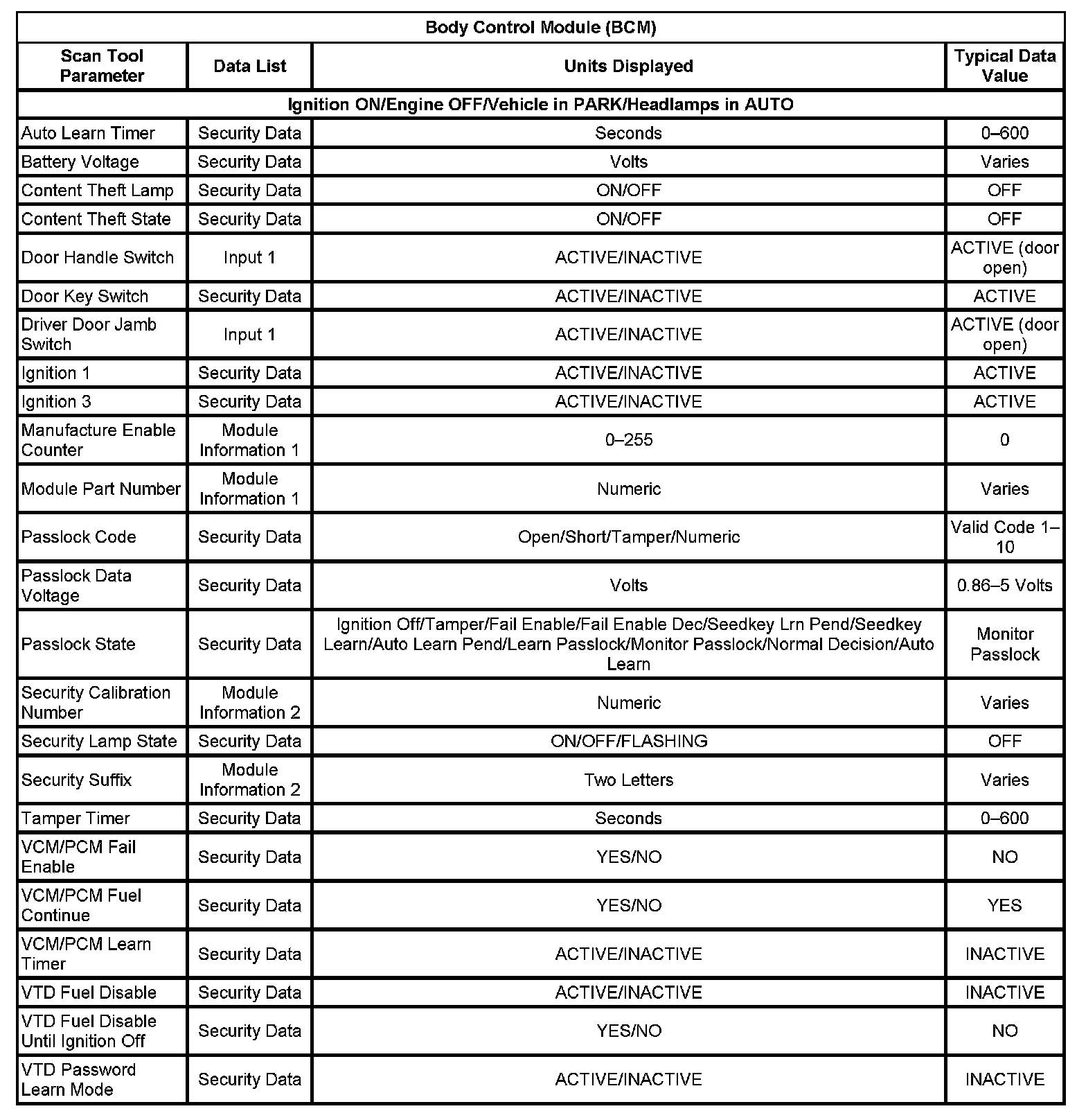 Body Control Module (BCM):