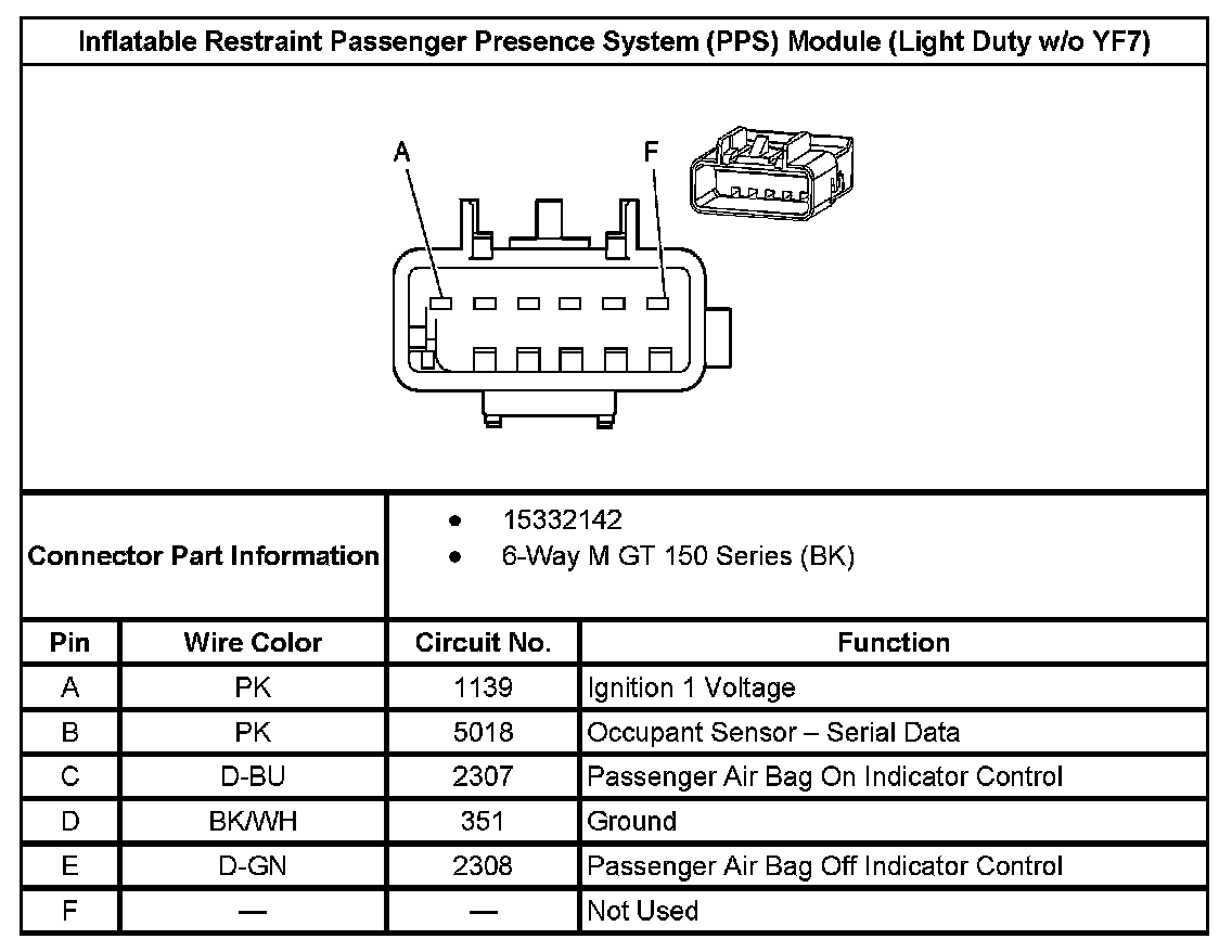 Inflatable Restraint Passenger Presence System (PPS) Module (Light Duty Without RPO Code YF7):