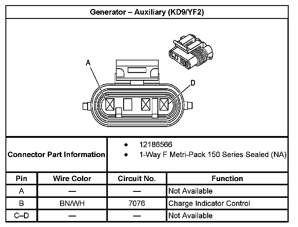 Generator - Auxiliary (With RPO Code KD9/YF2):