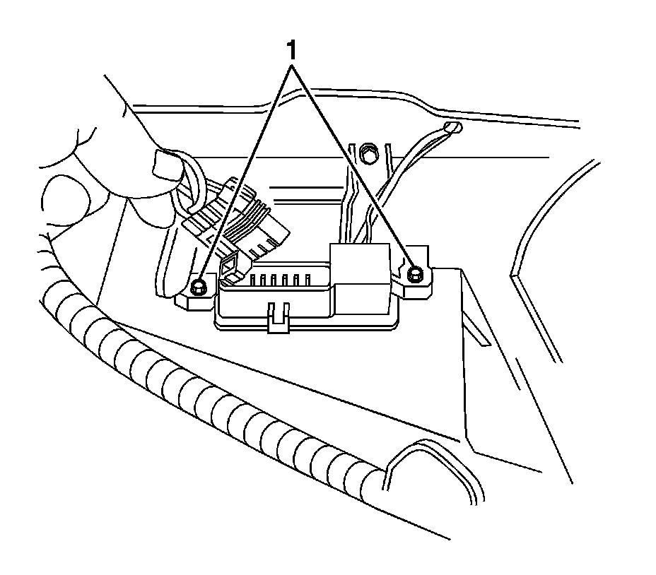 2. Remove the blower motor resistor assembly retaining screws (1).