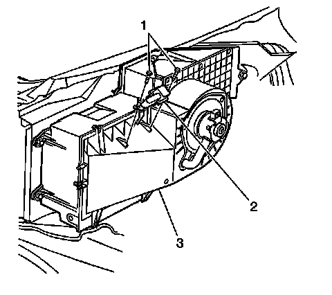 3. Remove the blower motor resistor assembly (2) from the evaporator and blower module assembly (3).