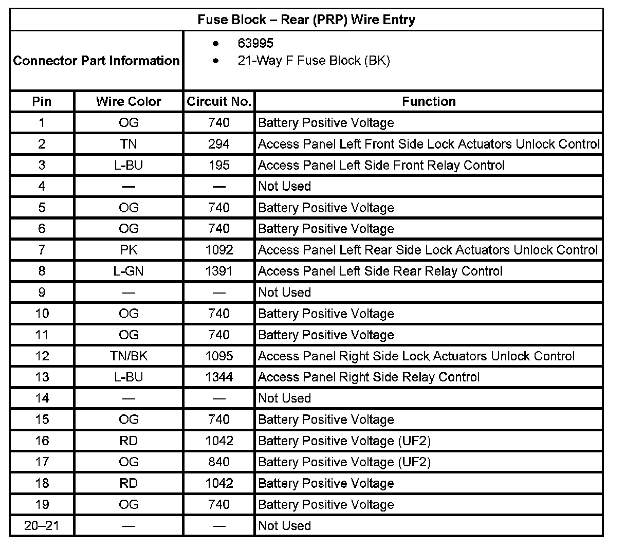Fuse Block - Rear (With RPO Code PRP) Wire Entry: