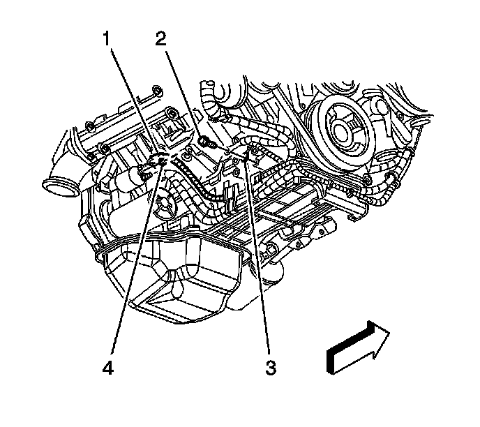 4. Remove the engine wiring harness nut (4).